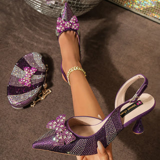 Hot Selling Butterfly Decorated with Crystal Shoes Matching Bag Set